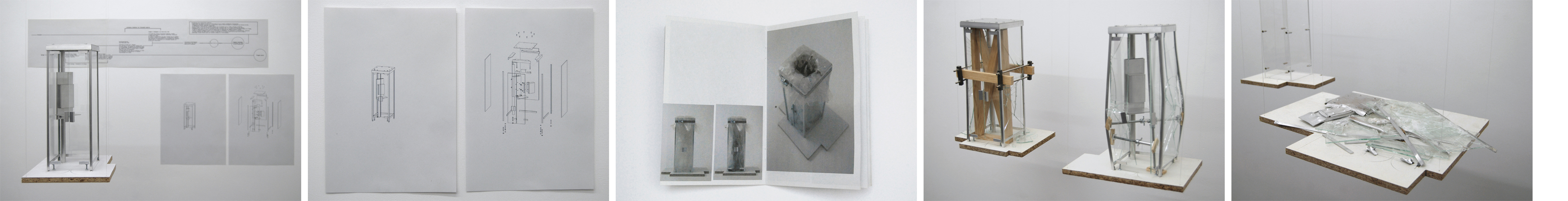 , 2010 installation, maquettes au 1/10ème (en aluminium, acier et verre), fil de nylon, dimensions variables